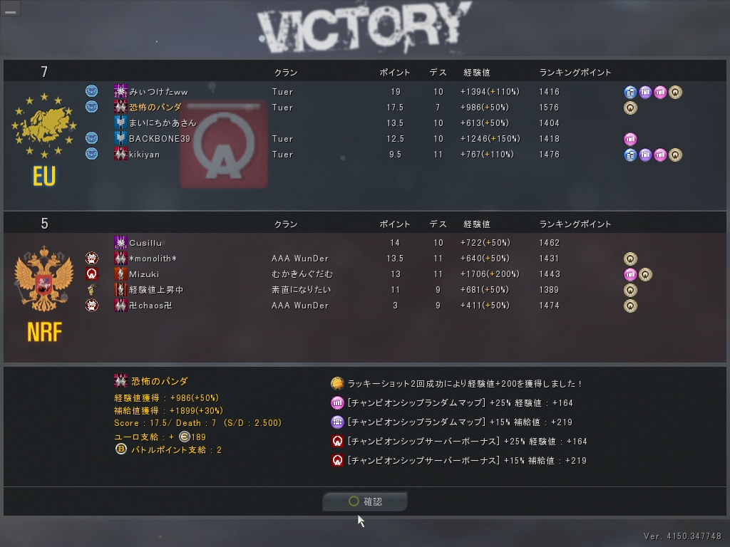 みぃさんたちとマッチしてる中で野良でお友達になったkumakitiさんと